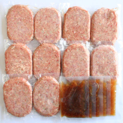 1個120gと小さ目な用途を選ばないサイズ、調理加熱時に油脂・水分を逃がしづらい配合の為、フライパンでの焼き調理も楽々です!